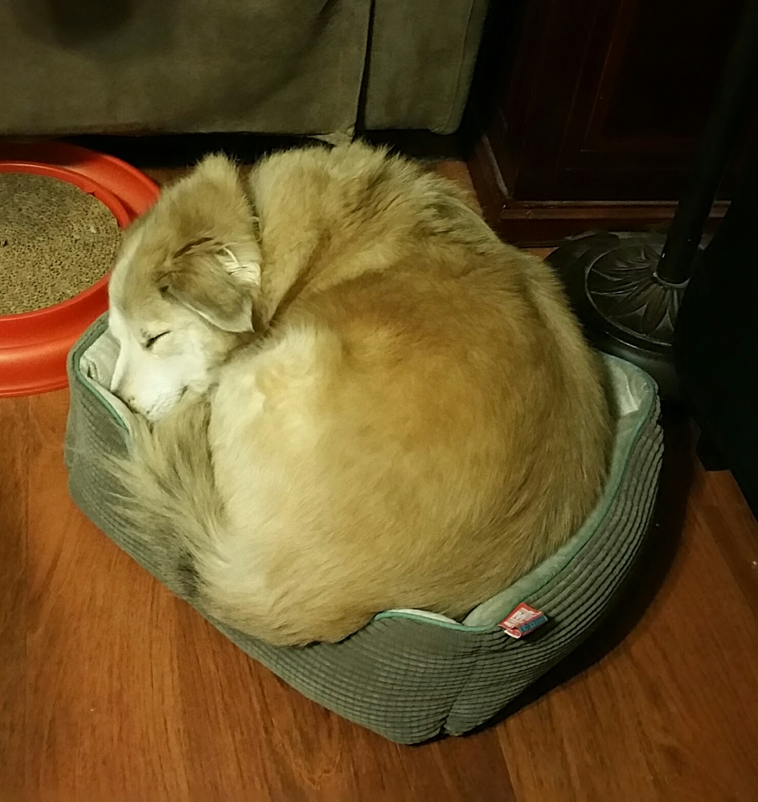 Despite the occasional escape, during which she’d take herself for a walk around the neighborhood, usually to chase after a pesky squirrel, she was a good dog. She was well mannered around everyone, unless you were a man wearing a hat, which meant you were absolutely not to be trusted, and she made sure to tell you. A former foster parent had taught her how to jump up into people’s arms, which she would often do unprompted, earning her the nickname “Flying Wallenda”. Almost everyone found themselves cuddling her eventually, whether they wanted to or not. Scrolling through my photos of her, I’m struck by all the times I caught her cuddled up with family and friends, even though she really, really hated being on camera. For the longest time, she would run away at the sight of a camera, and even after many years of trying to get her used to it, she’d still stop whatever cute thing she was doing if she thought I was trying to take her photo.