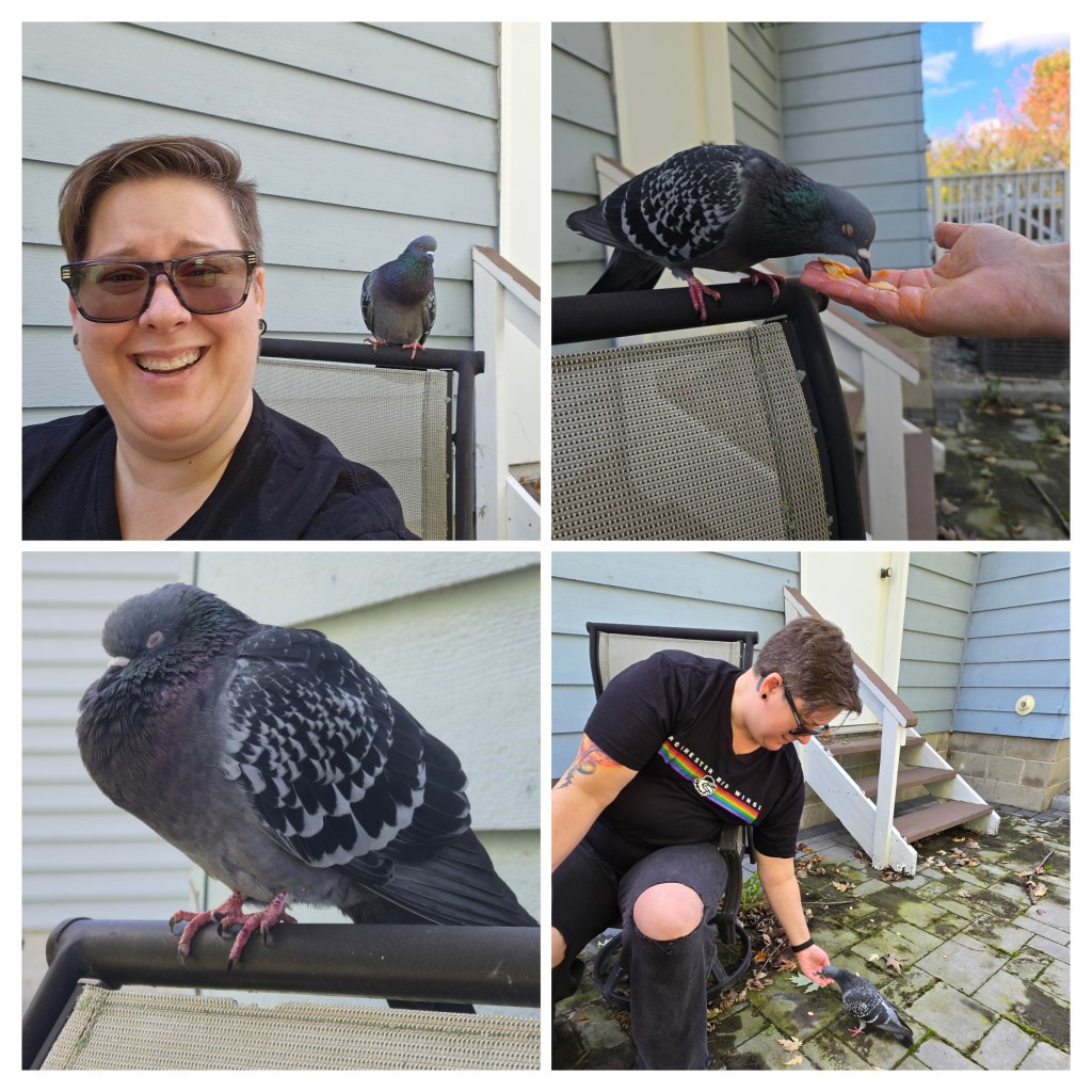 Kim and I went to Powers to see the teepees and get our pumpkins. Then, while we were carving them, we had a pigeon come land on my chair and act like he was the family pet! He came around a few more days for more bird seed, but after that week, Peter the Pumpkin Eating Pigeon stopped coming around the house. I hope you’re okay wherever you are, little one!