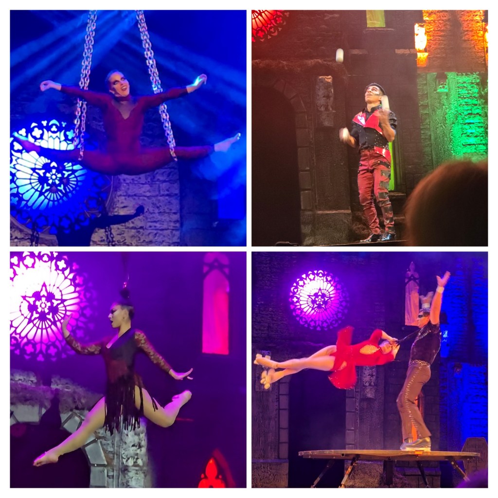 Mom and I went to the Smith Opera House in Geneva to see the Vampire Circus perform. It was a spooky mix of aerial acts and dark-humored clowns. I wasn’t sure what I was getting into when I said yes, but I’m glad we went!! There were some new things I’d never seen before, like ariel silks with chains and nets, and two people on a single cyr wheel.